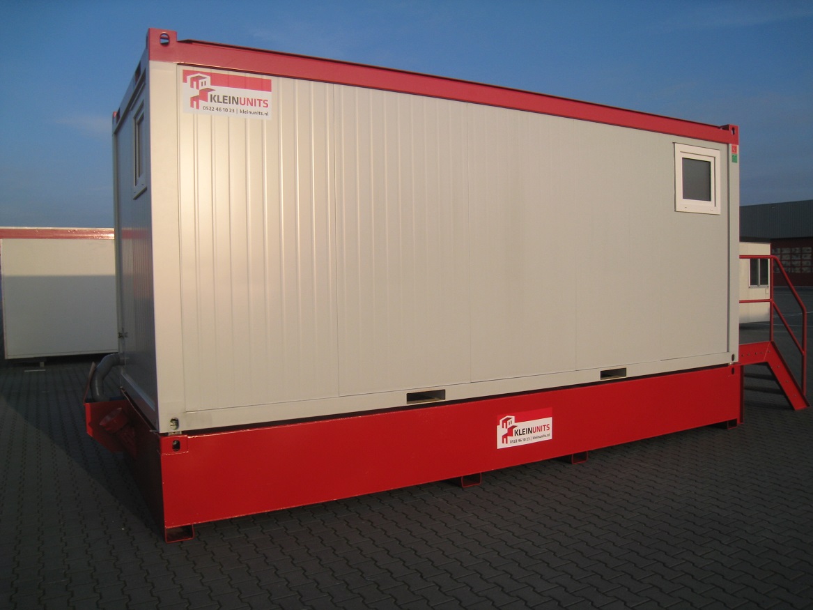 Deze unit is ook te koop. Waar wij ons bij huur vasthouden aan een standaard assortiment, zijn er bij verkoop meer mogelijkheden. Zo kunt u zelf de indeling bepalen, zijn er diverse opties qua sanitair en ook energiebesparende opties behoren tot de mogelijkheden. De afmetingen zijn standaard (van 10ft tot 30ft) en de breedtemaat van 2,44 meter ligt vast. De unit kan in meerdere standaard kleuren geleverd worden of desgewenst zelfs in uw bedrijfskleur! Neem contact op voor de mogelijkheden.