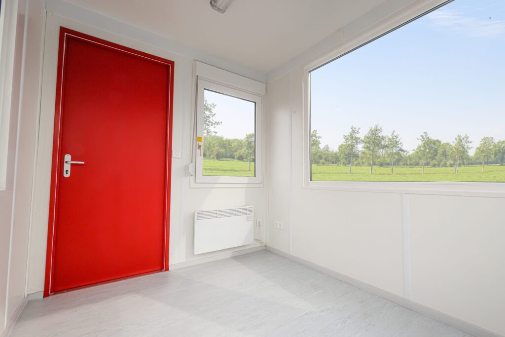 Deze unit is ook te koop. Waar wij ons bij huur vasthouden aan een standaard assortiment, zijn er bij verkoop meer mogelijkheden. Zo kunt u kiezen voor verschillende indelingen qua ramen en deuren, type isolatie en diverse standaard afmetingen (van 10ft tot 30ft). De breedtemaat van 2,44 ligt bij deze unit vast, maar u kunt deze unit ook schakelen of stapelen. De unit kan in meerdere standaard kleuren geleverd worden of desgewenst zelfs in uw bedrijfskleur! Neem contact op voor de mogelijkheden.