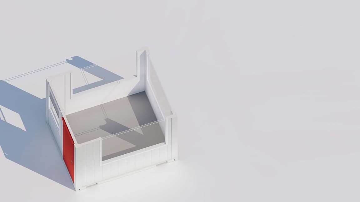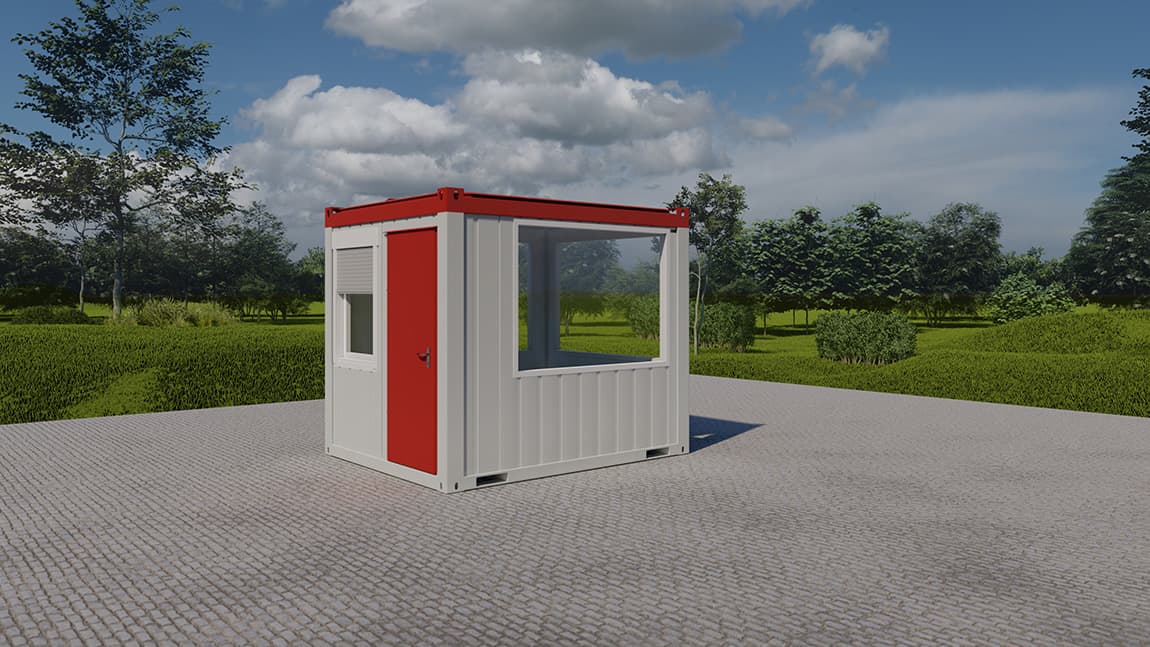 Geschikt als portierslogeDeze compacte kantoorunit biedt een praktische oplossing voor situaties waarin een kleine werkruimte nodig is. Door het overzichtelijke formaat is de unit ook zeer geschikt als portiersloge of ontvangstpunt bij een terrein of ingang.