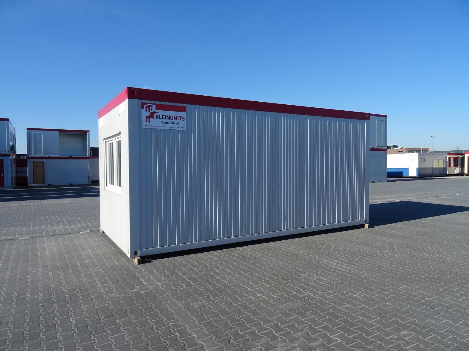 Mits de unit voorradig en beschikbaar is, streven wij ernaar om de unit binnen 5 werkdagen te kunnen leveren op locatie [m.u.v. woonunits en schakelunits].