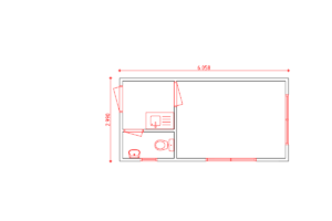 Kantoorunit 6 x 3 m.