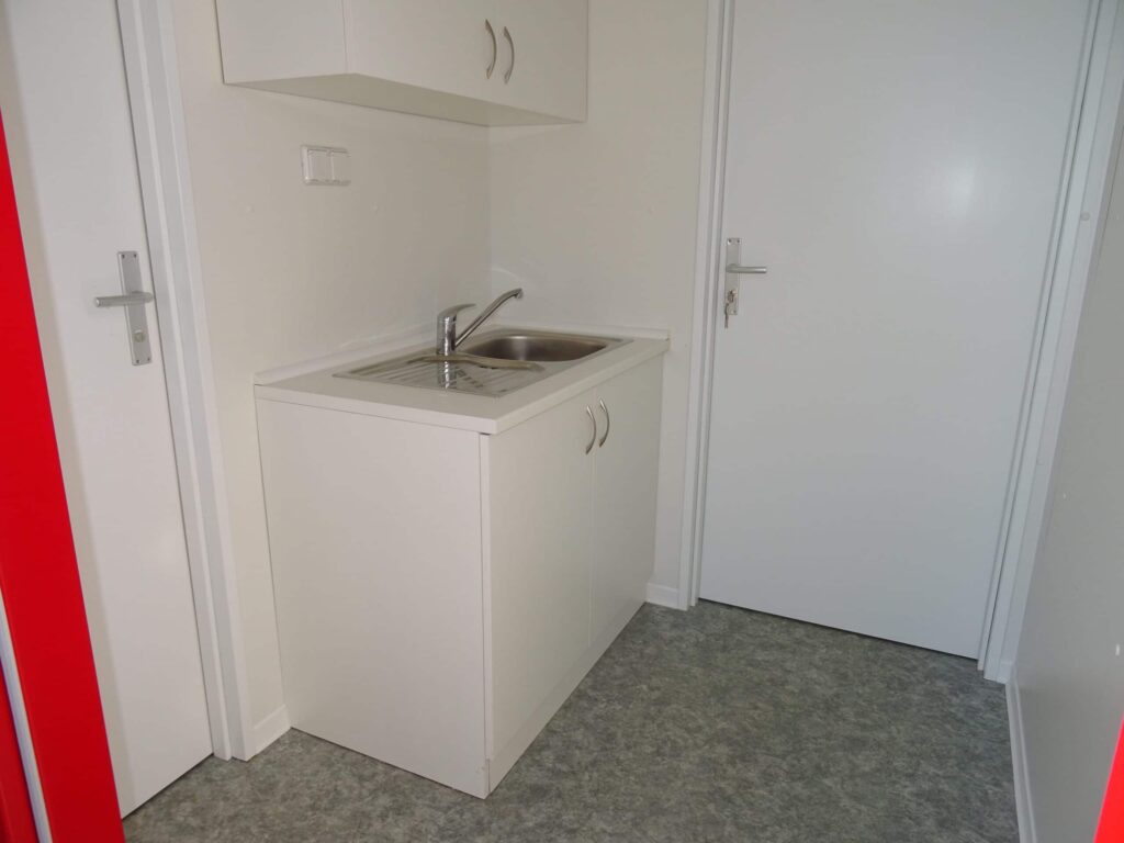 Met keuken + toiletToilet met wastafel en boilerKeuken met spoelbak + kraan en boilerSnel leverbaarEenvoudig te plaatsenPrijs op aanvraag