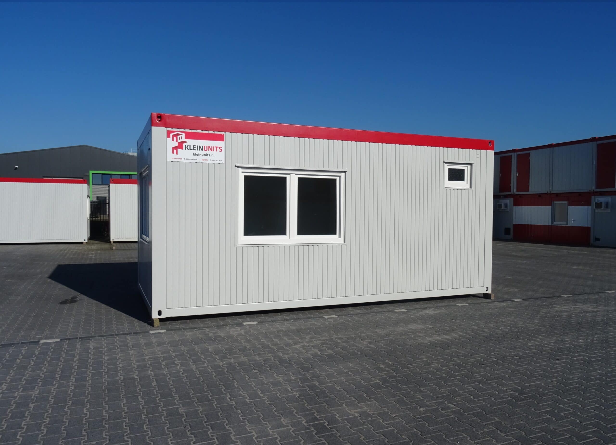 Mits de unit voorradig en beschikbaar is, streven wij ernaar om de unit binnen 5 werkdagen te kunnen leveren op locatie [m.u.v. woonunits en schakelunits].