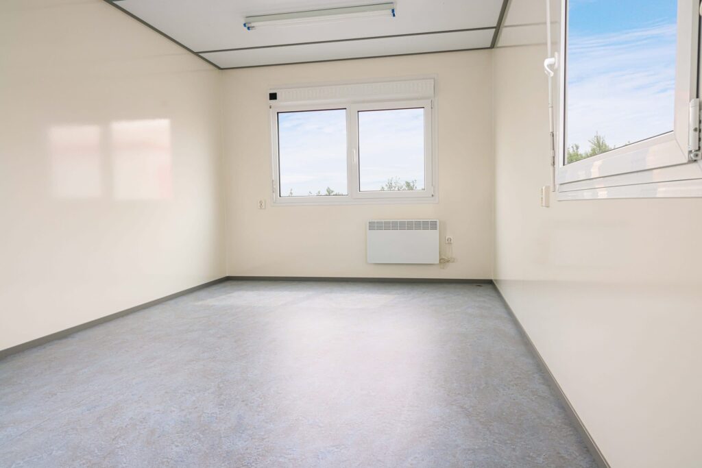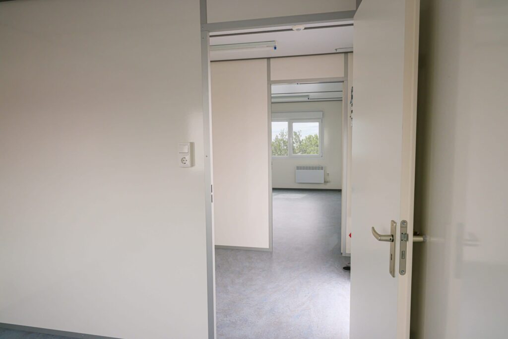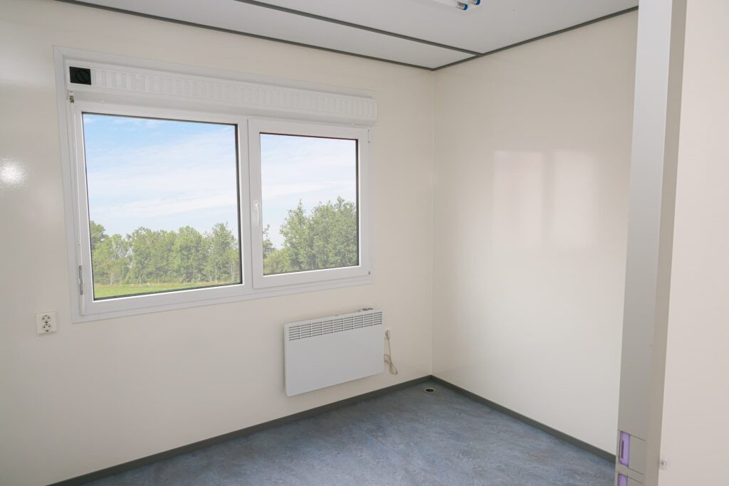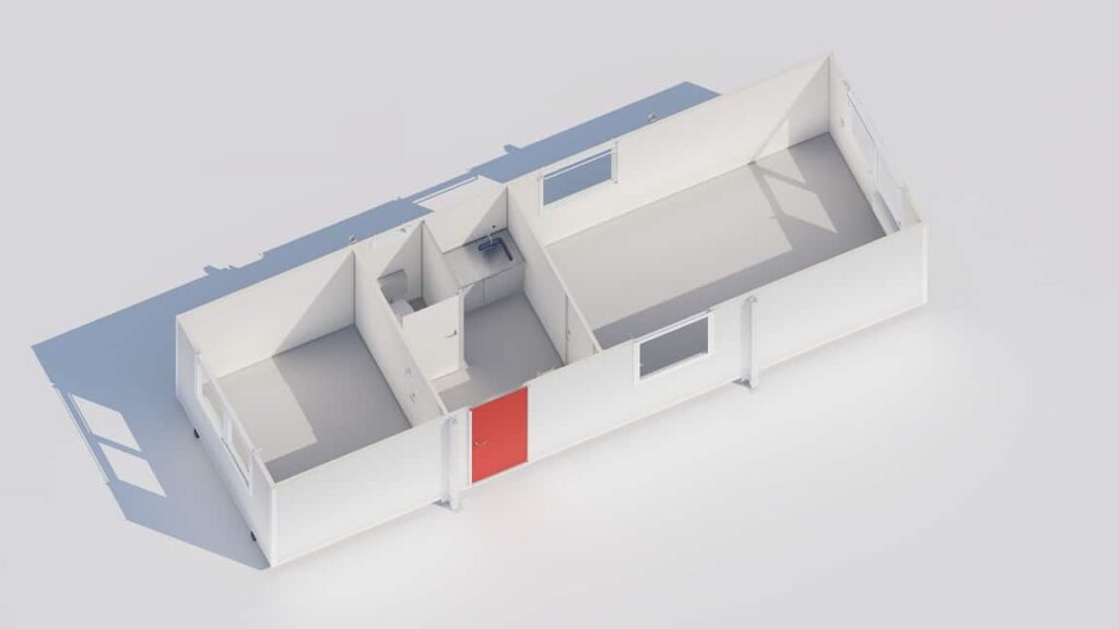 met sanitair en pantryDeze kantoorunit biedt een ruime en comfortabele werkplek voor grotere teams of projectwerk. Dankzij de royale afmetingen ontstaat een praktische en overzichtelijke kantoorruimte.