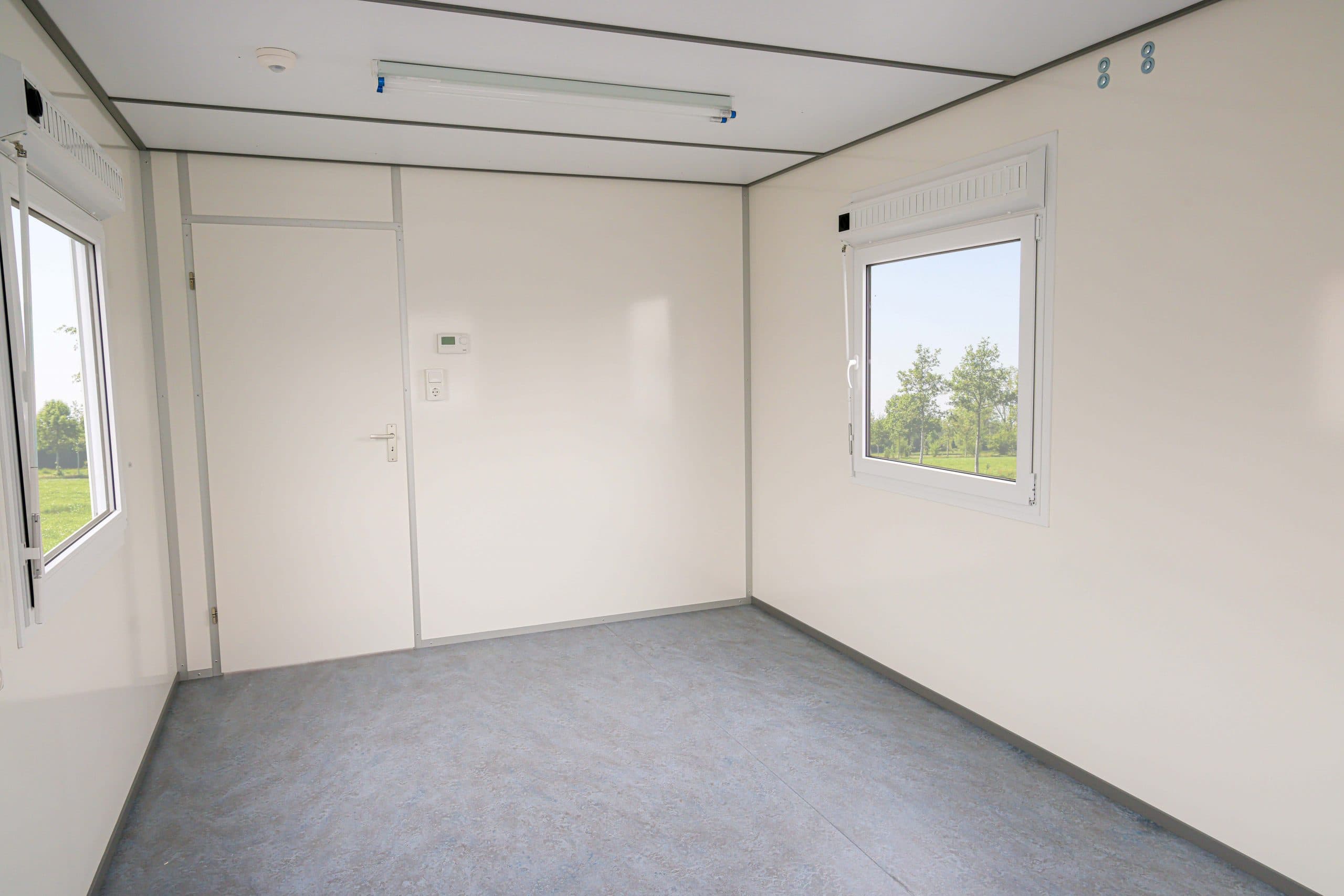met sanitair en pantryDeze kantoorunit biedt een ruime en comfortabele werkplek voor grotere teams of projectwerk. Dankzij de royale afmetingen ontstaat een praktische en overzichtelijke kantoorruimte.