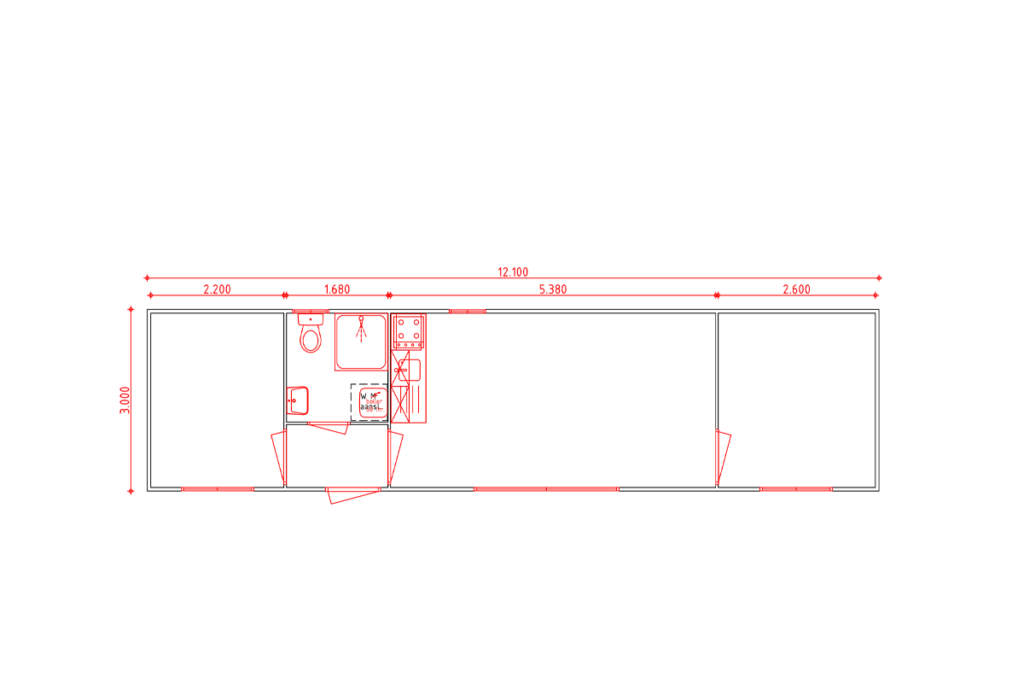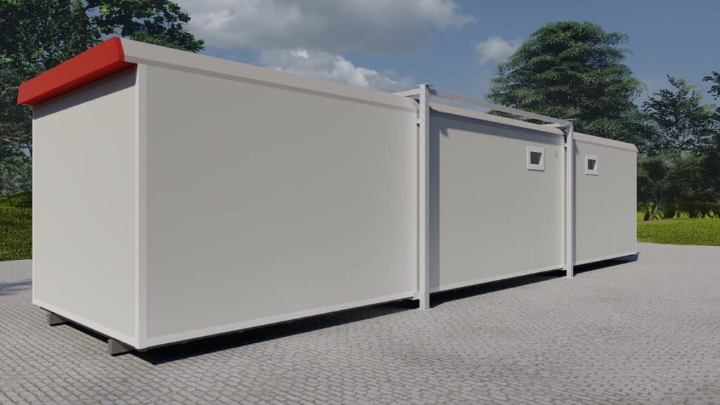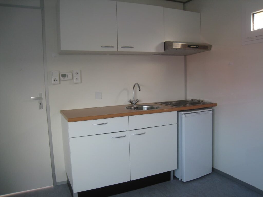 Zelfstandige woonruimteDeze compacte woonunit bestaat uit één unit met meerdere ruimtes en biedt een praktische oplossing voor tijdelijk verblijf. De unit is ingericht met afzonderlijke kamers, een keuken en sanitair, waardoor een zelfstandige woonruimte ontstaat.